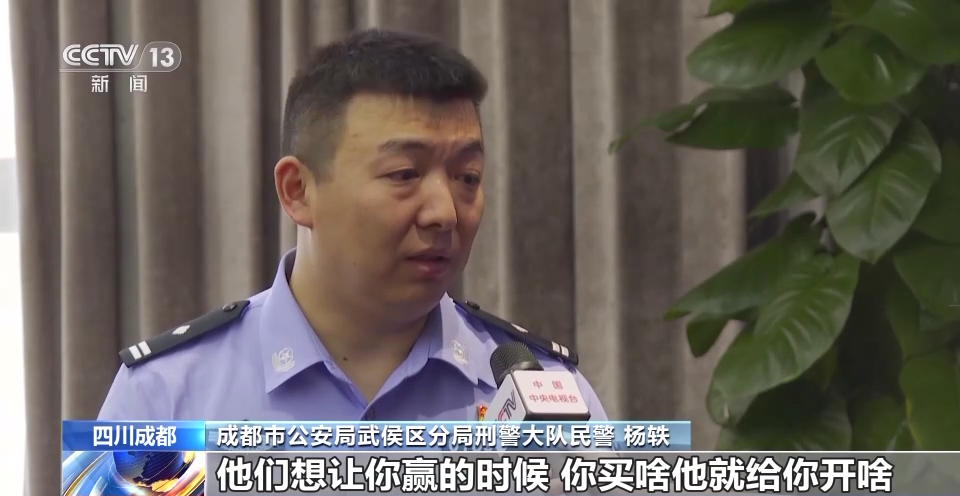 成都市公安局武侯区分局刑警大队民警 杨轶:实际上这个App的后台是诈骗分子自己可以控制的,他们想让你赢的时候,你买啥他就给你开啥,想让你输的时候你买啥他就反着给你开。