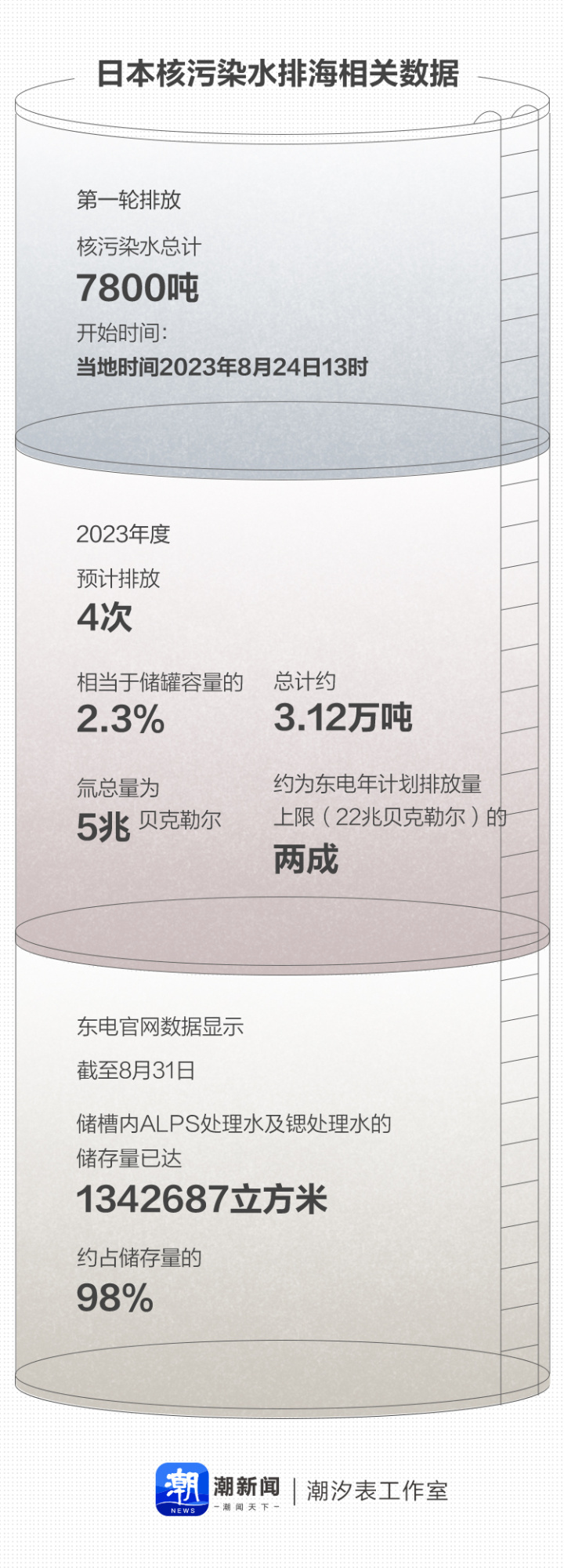 官方数据显示,目前福岛第一核电站含有放射性物质的核污染水,已经积存超过130万吨,而且还在以每天100吨的速度增加。预计未来,日本核污染水排海至少要持续30年。
