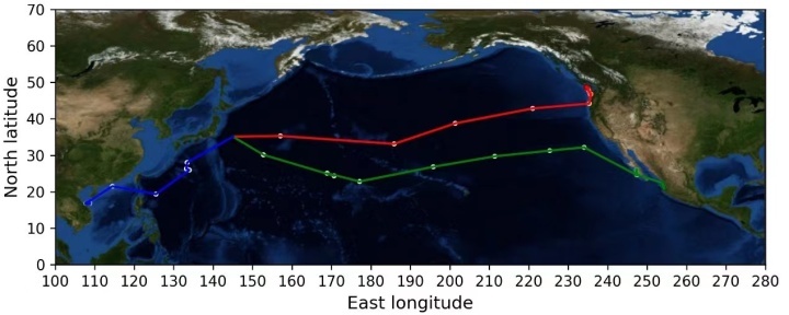 宏观模拟结果表明,核废水在排放后240天就会到达我国沿岸海域,1200天后将到达北美沿岸并覆盖几乎整个北太平洋。随后,污染物一边在赤道洋流的作用下沿着美洲海岸向南太平洋快速扩散,另一边通过澳大利亚北部海域向印度洋转移。