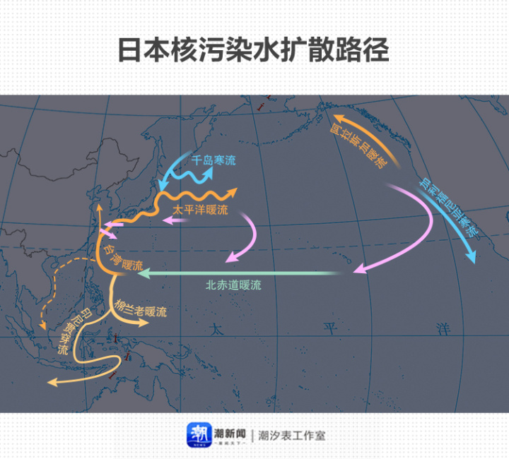 中科院南海海洋研究所研究员陈更新曾在接受采访时指出,从扩散路径来看,日本核污染水会影响到中国南海、东海、渤海和黄海。北太平洋是其中严重的被污染区。事实上,全球都逃不掉日本核污染水的影响。