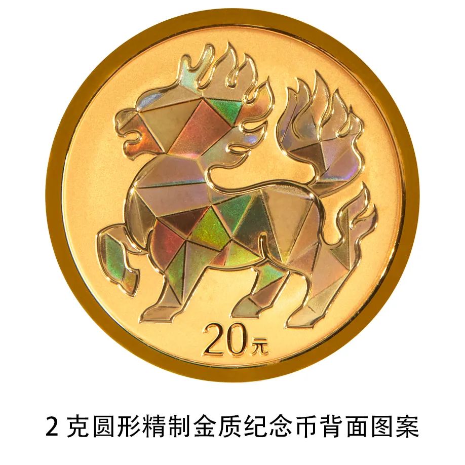 2克圆形金质纪念币背面图案为装饰麒麟造型,并刊面额。
