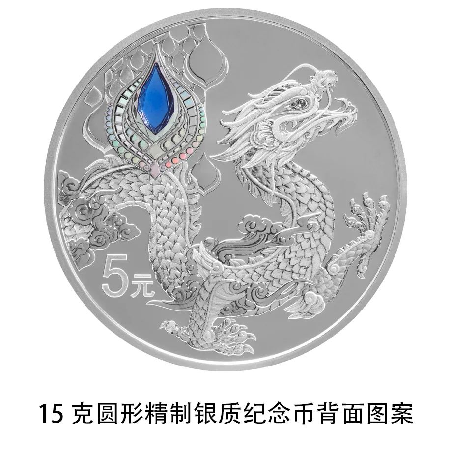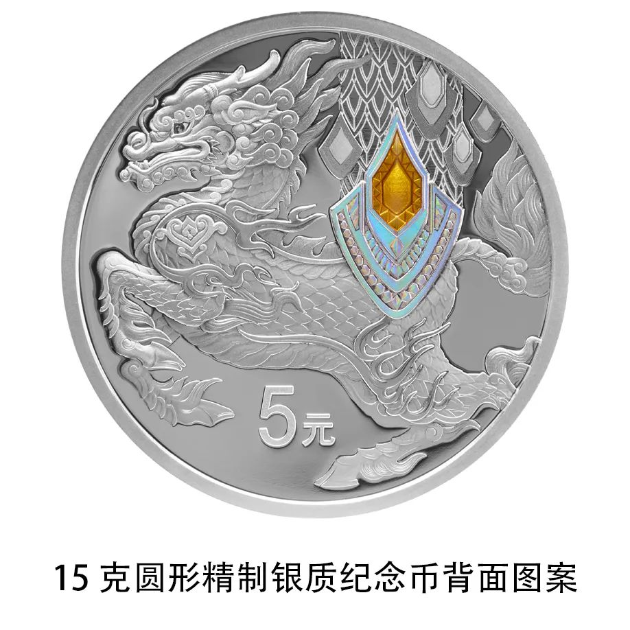 15克圆形银质纪念币背面图案为龙造型,并刊面额。