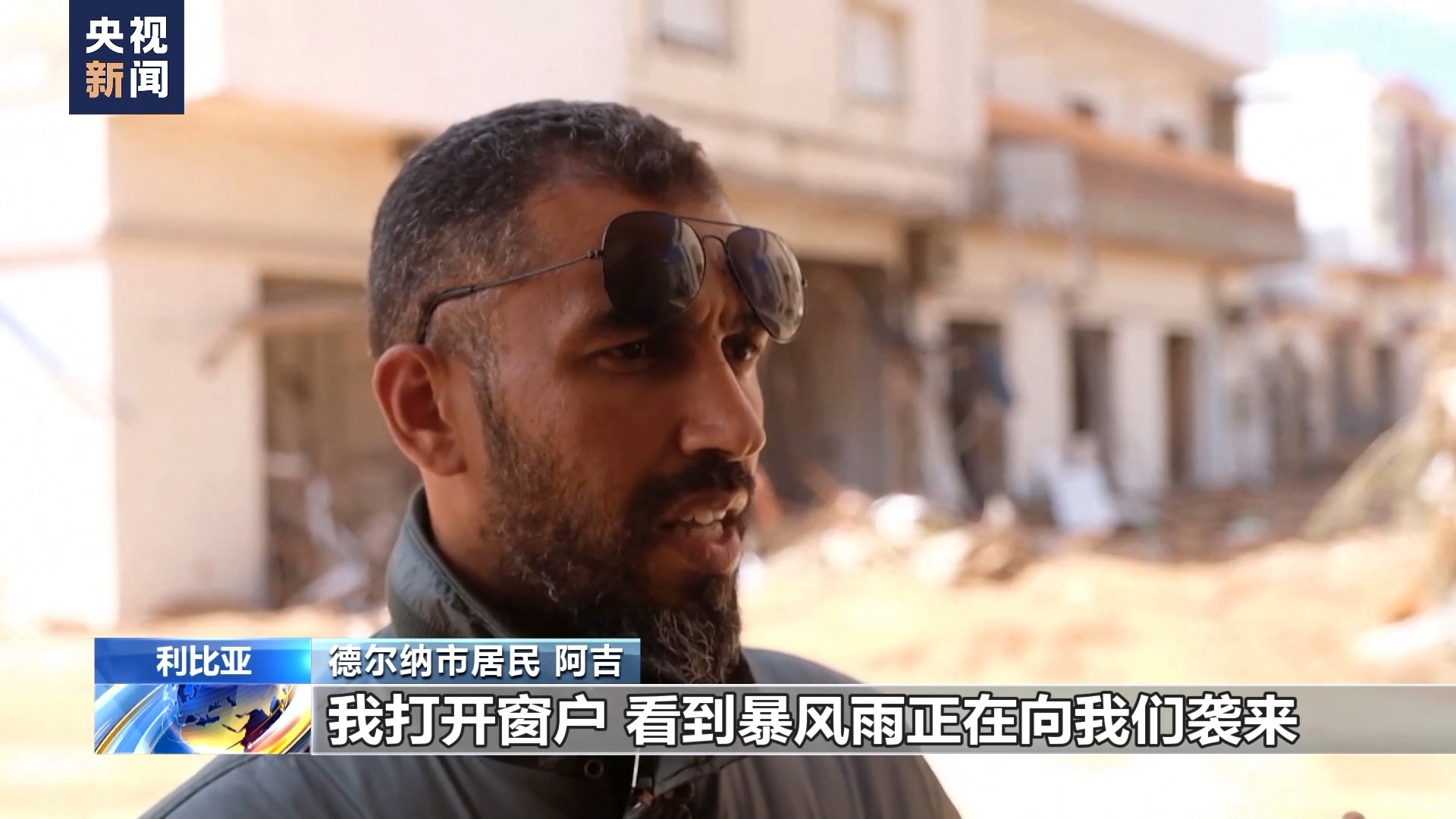德尔纳市居民 穆斯塔法·萨利姆:我们听说水坝决堤了,水淹没了整个地区。人们都在睡觉,没有人提前准备,但事情就这么发生了,我们还能做什么。我家就在山谷旁边,在清真寺对面,全家人都住在那里,我们是邻居。到目前为止,我们失去了30个人,30个家庭成员都还没有找到。