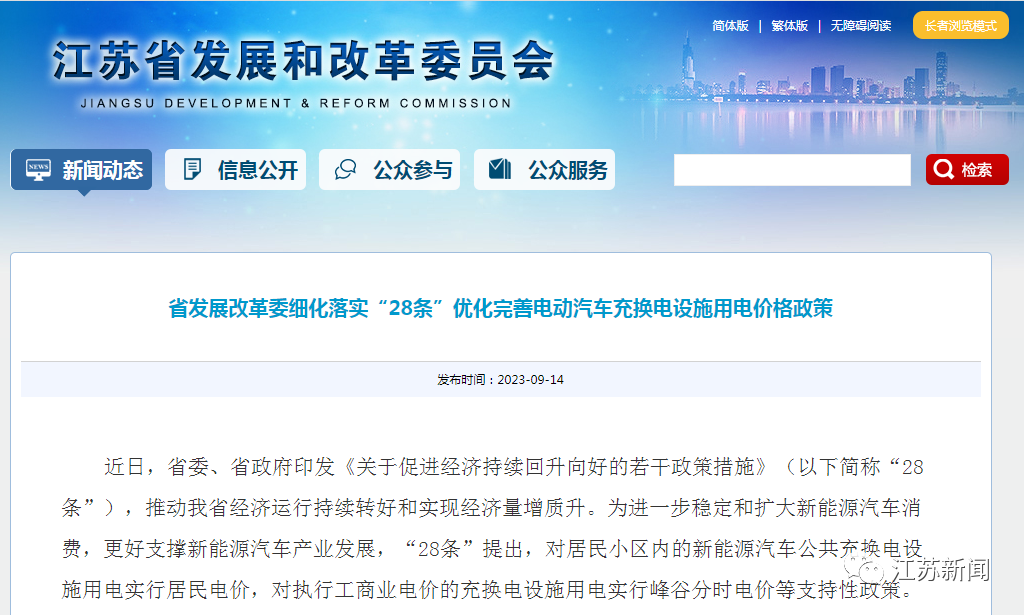 9月14日,江苏省发改委发布了《省发展改革委细化落实“28条”优化完善电动汽车充换电设施用电价格政策》。全文如下: