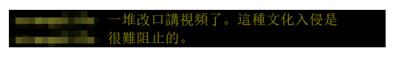 值得一提的是,还有网民声称,“一堆(人)改口讲视频了,这种文化入侵是很难阻止的。”三立新闻网在报道此事时,也在标题中使用“文化入侵难防”的字眼。↓