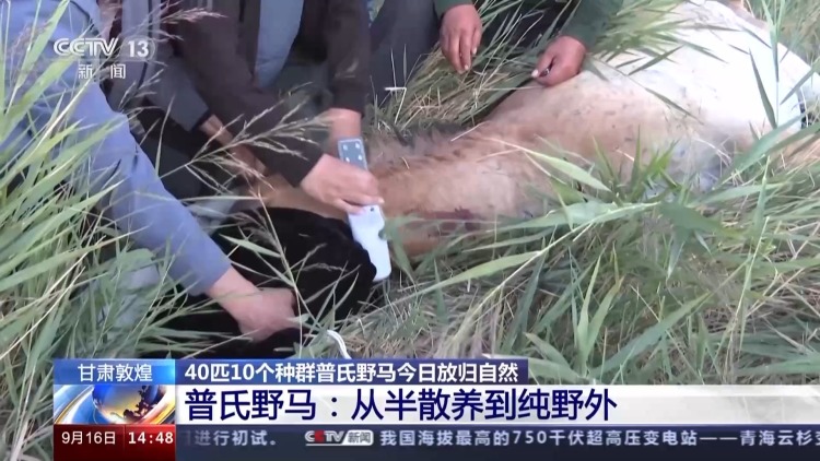 饲养经验越来越丰富,马驹的成活率也从最开始的百分之六七十,上升到90%以上。随着种群数量扩大,2010年、2012年,国家分两批次,在甘肃敦煌西湖国家级自然保护区大约1万公顷的马圈湾等湿地,半散养了28匹普氏野马。截至今年7月底,野马数量增加到了102匹,随之而来的,就是承载量的问题。