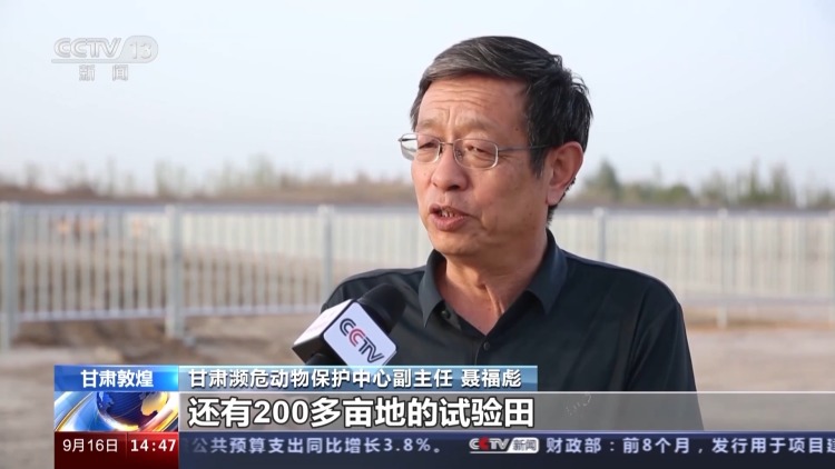 甘肃濒危动物保护中心副主任 聂福彪:现在两个渠道,继续在探讨饲草多样性的问题,还有200多亩地的试验田,包括还种了一些中草药,让它在采食的过程中,解决一些疾病的问题。