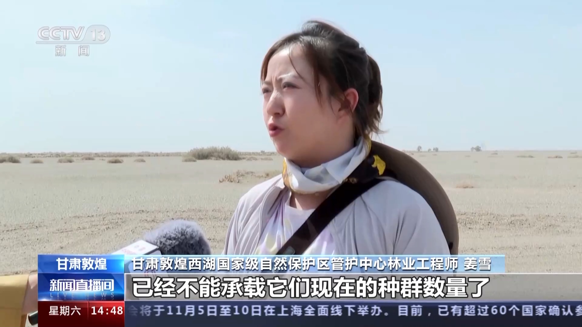 甘肃敦煌西湖国家级自然保护区管护中心林业工程师 姜雪:我们现在的放归地(马圈湾),已经不能承载它们现在的种群数量了,已经开始出现因为争夺领地,马群和马群之间、种群和种群之间开始打斗,杀婴的行为已经开始出现了。而且,近几年监测数据表示,它们的繁殖数量已经开始慢慢递减了,说明它的活动范围太小了,会影响到它的繁衍。