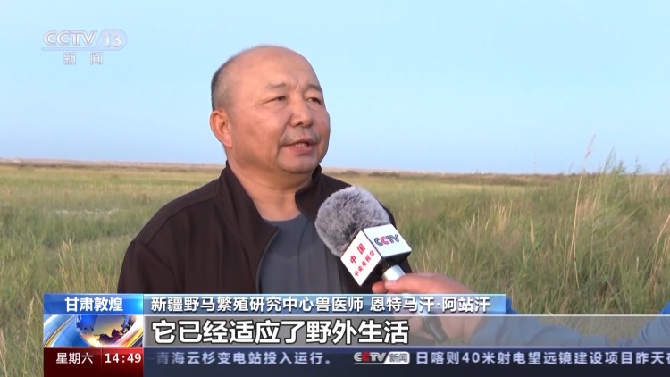 新疆野马繁殖研究中心兽医师 恩特马汗·阿站汗:目前的野马情况来看,它已经适应了野外生活。