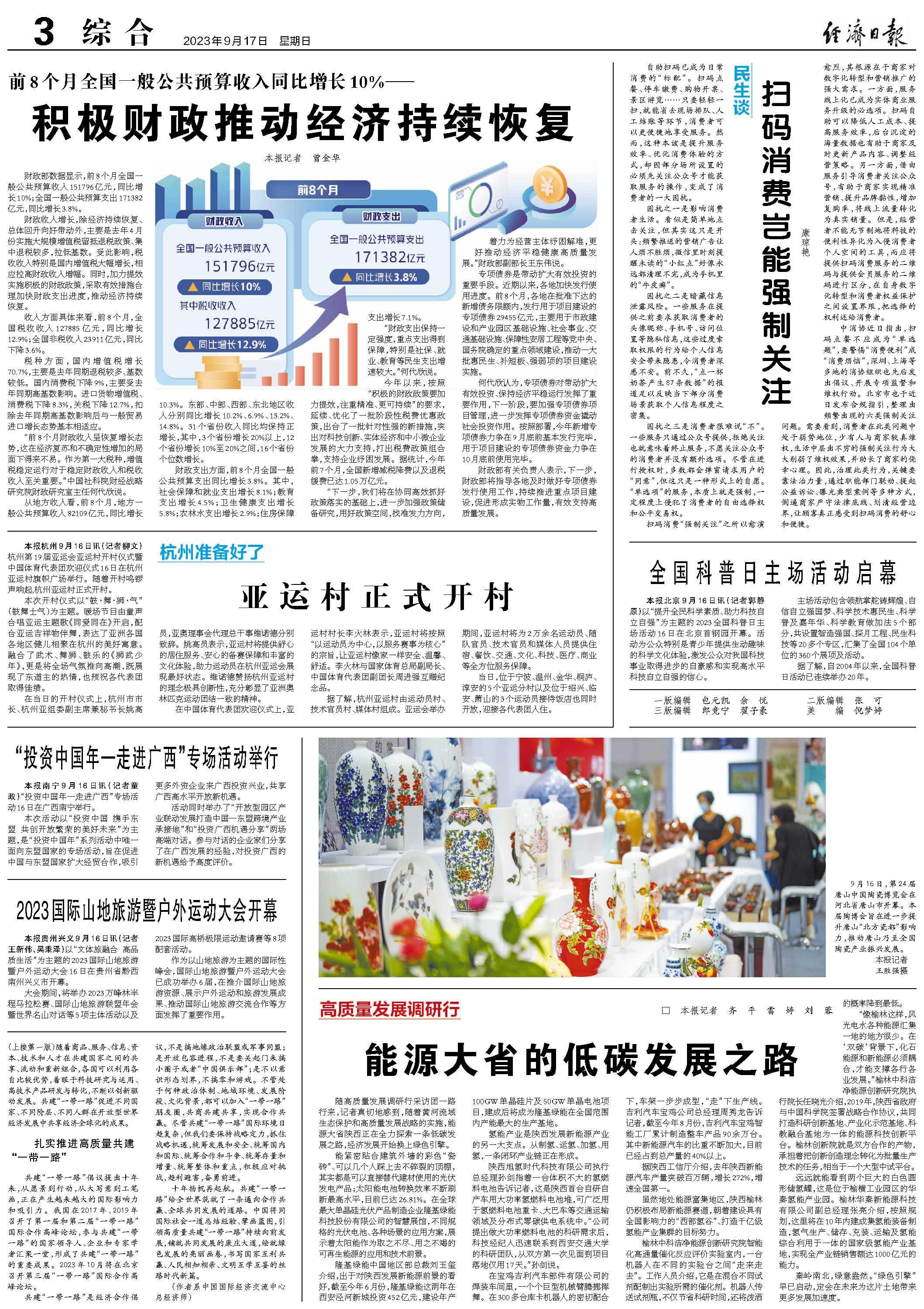 财政部数据显示,前8个月全国一般公共预算收入151796亿元,同比增长10%;全国一般公共预算支出171382亿元,同比增长3.8%。