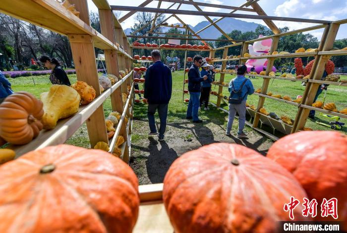 2023乌鲁木齐首届巨型南瓜狂欢节在该市水磨沟区石人农场举行。中新网记者 刘新 摄