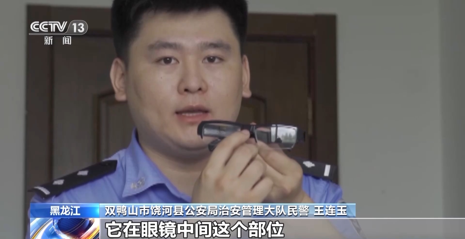 双鸭山市饶河县公安局治安管理大队民警 王连玉:这个眼镜是非常普通的一款透明平面镜,没有任何度数。不法分子通过改装,在眼镜中间加装摄像头,录像之后会储存到眼镜的内部。这种情况是很难被其他人发现的。