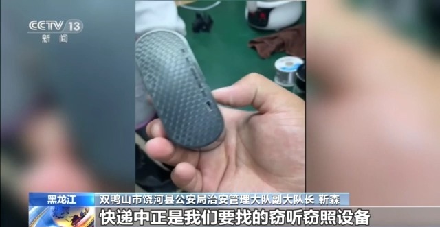 双鸭山饶河县公安局治安管理大队副大队长 靳森:我们在审讯陈某斌时,他手机突然来了一个快递通知,这让陈某斌非常紧张,我们直接将快递截获,快递中正是我们要找的窃听窃照设备,最终我们锁定寄件人来自广东惠州某工业园区的人。