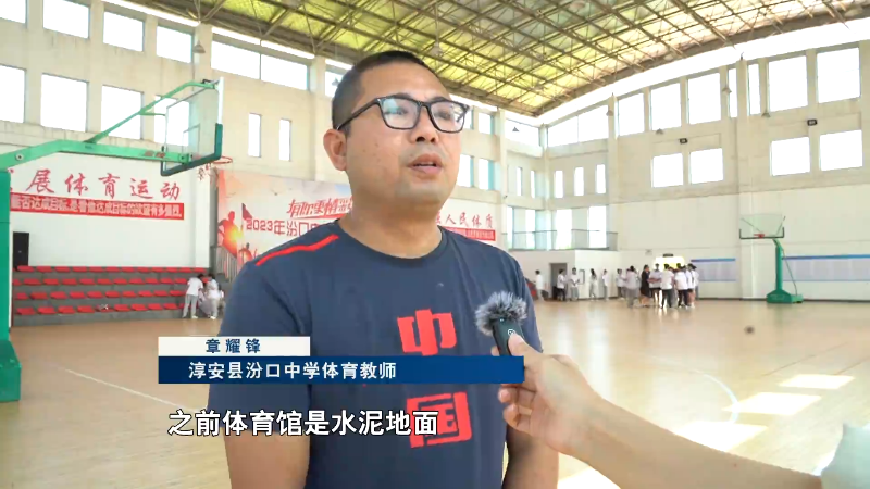 淳安县汾口中学体育教师 章耀锋:之前体育馆是水泥地面,运动很容易起来灰尘。
