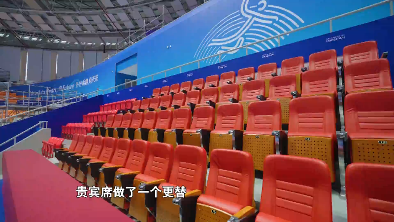 浙江工商大学文体中心新闻宣传中心主任 喻蔚:贵宾席做了一个更替,其余所有凳子都保留下来,通过反复保养、洗刷、抛光,把部分损坏的修复,就跟新的一样。