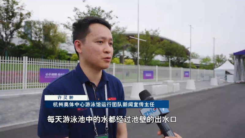 杭州奥体中心游泳馆运行团队新闻宣传主任 许灵翀:每天游泳池的水都经过池壁的出水口进行新一轮的循环处理。耗水量还真不大。一年可以省下18万吨水,可以供4000名杭州人一年的用水量。