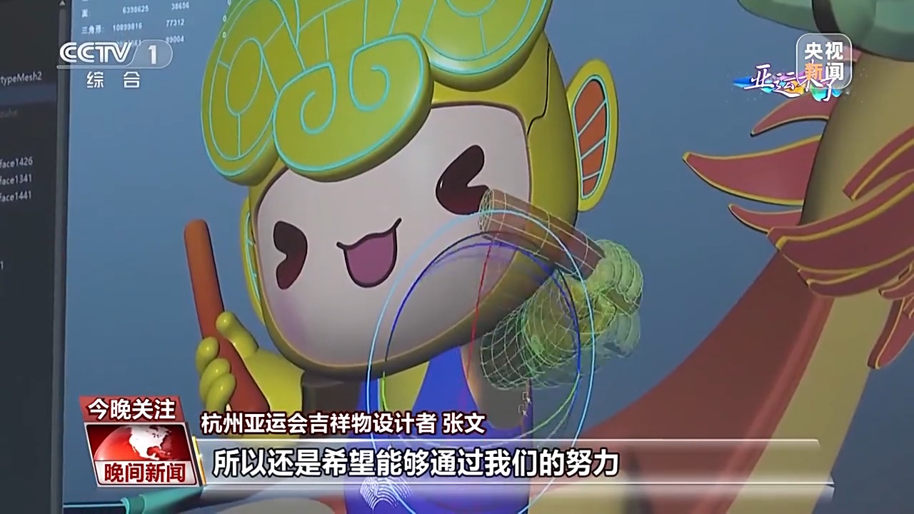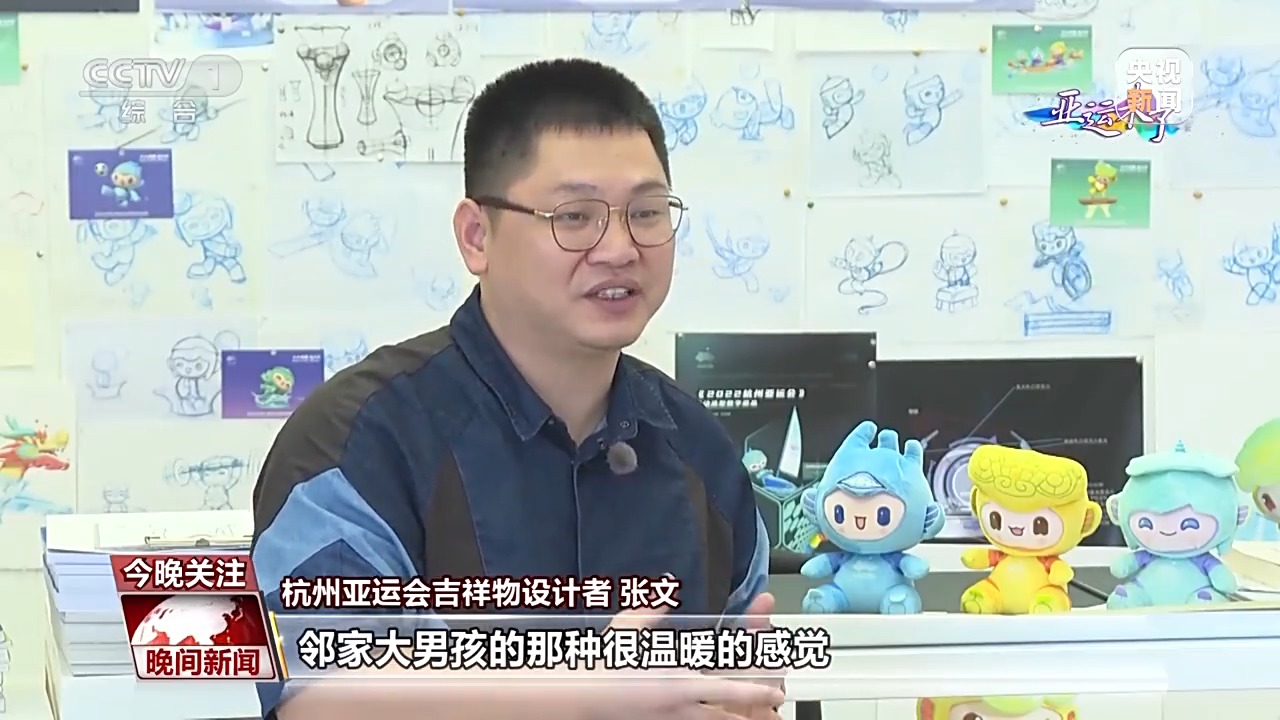 杭州亚运会吉祥物设计者 张文:我们这次亚运会的一个办赛理念跟往届最大的区别就是不同的特点在于智能化的一个突显,所以还是希望能够通过我们的努力,能够建构一个新的方向,让大家体验不一样的亚运会,尤其是吉祥物。