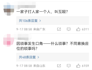 质疑点一是警方通报对事件的描述。从警方的通报看,对事情的起因提法为“因琐事发生口角”,没有提及“换座被拒绝,事后敲打座椅” 一事。