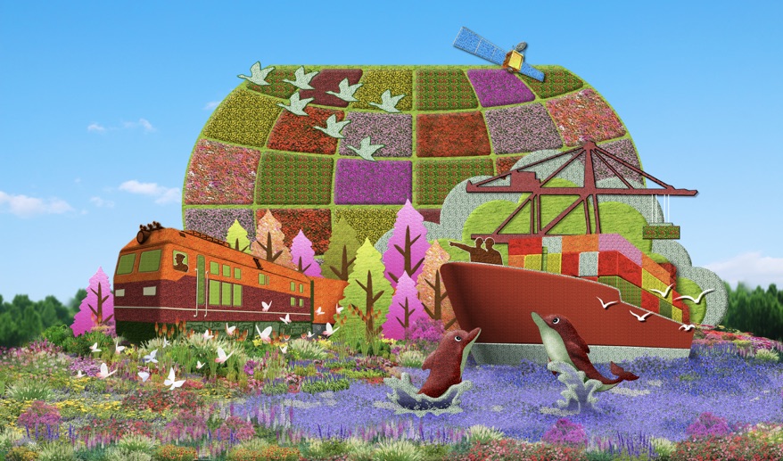 18米高花篮装满花卉和五谷