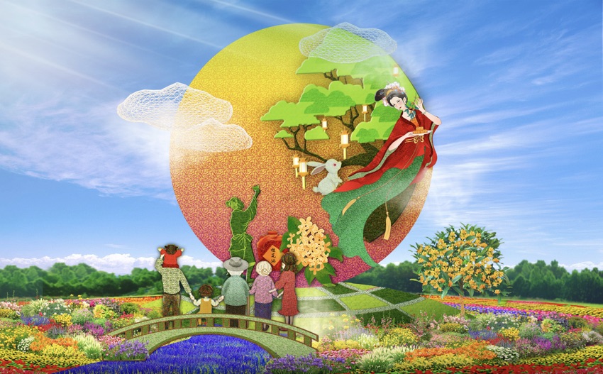 8,西单西北角的“花好月圆”花坛顶高8米,以一家人中秋团聚的温馨画面为场景,体现了花好月圆下百姓幸福生活。