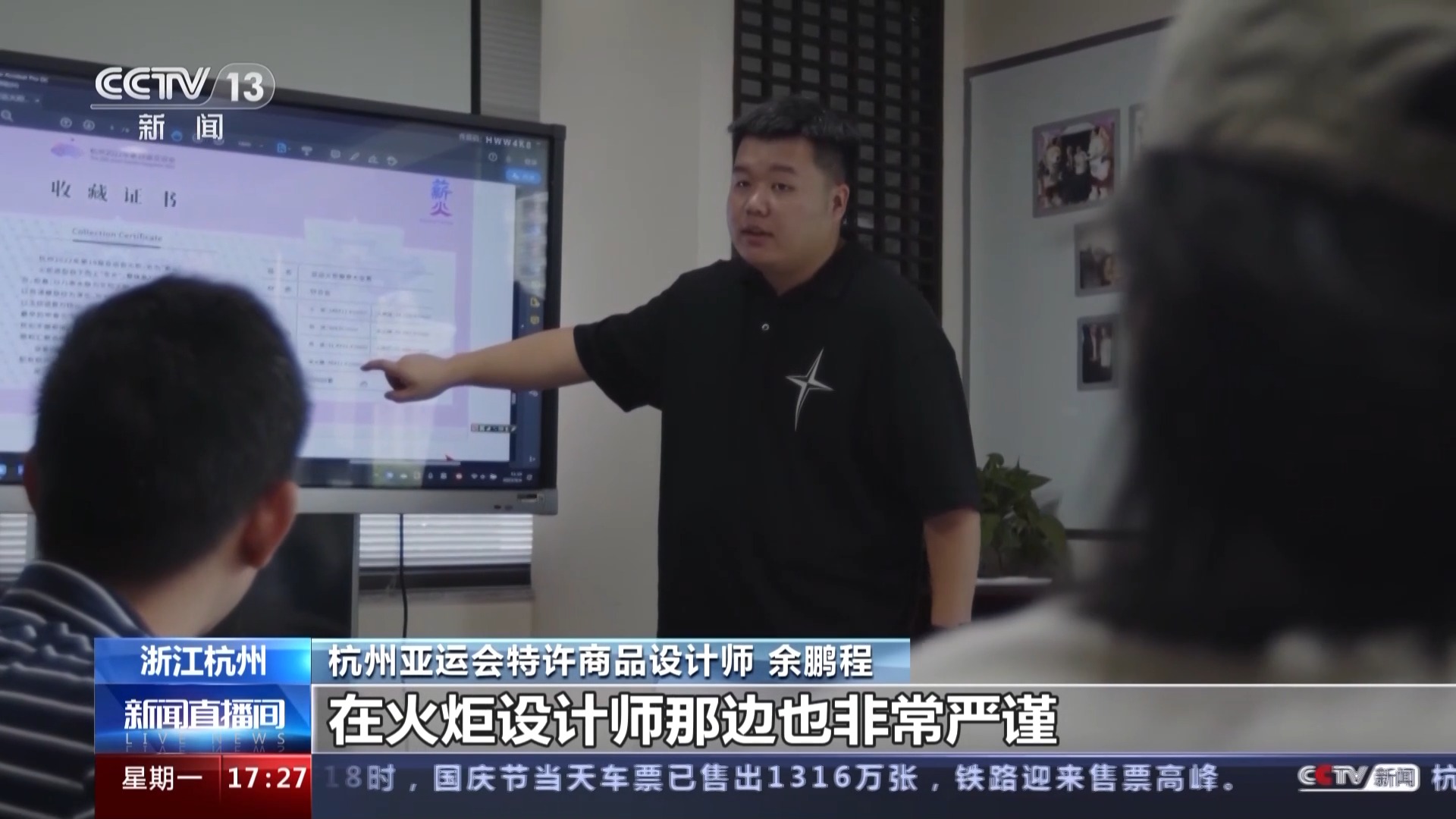杭州亚运会特许商品设计师 余鹏程:火炬设计师也非常严谨,他们在不断调整细节,当火炬定稿时,我们怎么把产品呈现出来,也要让他们满意。在工艺上也遇到了很大的挑战,喷漆是要非常细腻的,非常难把控这个度。