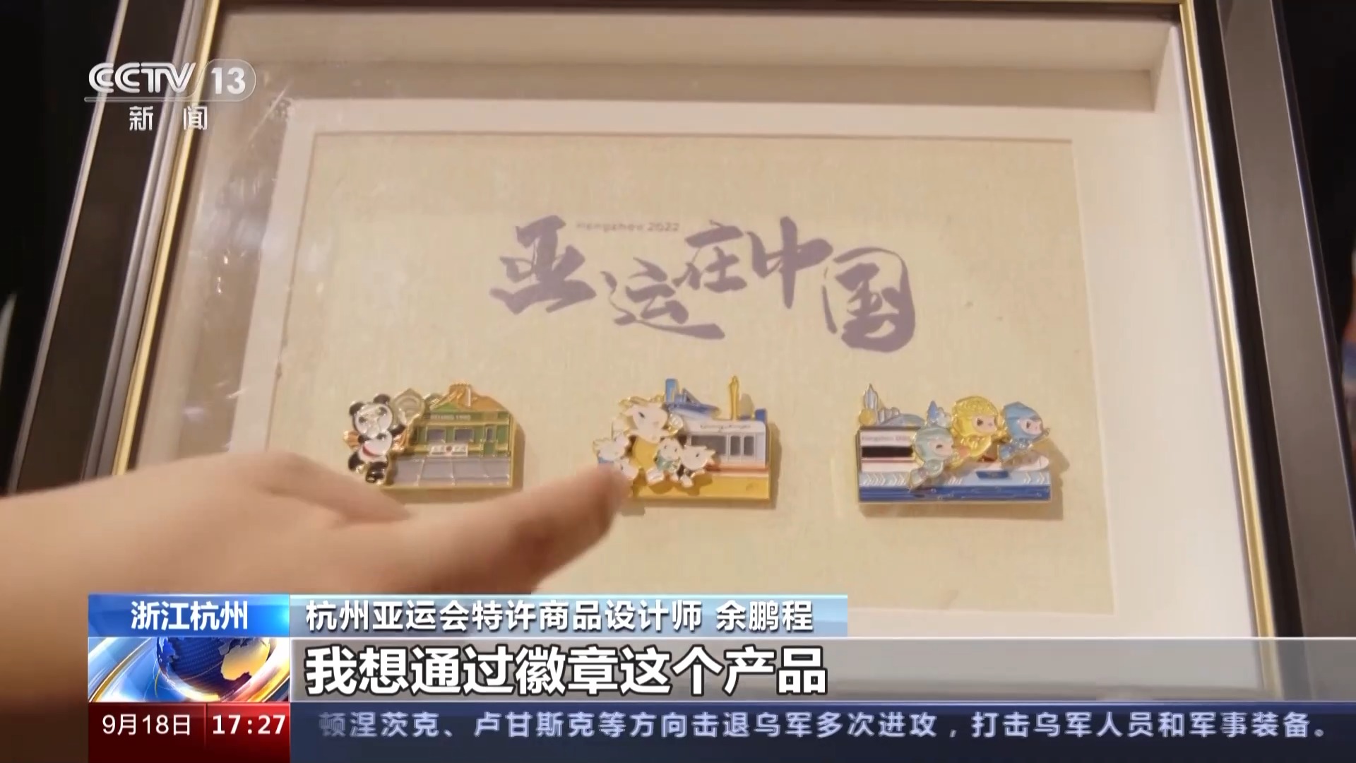 杭州亚运会特许商品设计师 余鹏程:就像这套产品一样,亚运会在中国举办三届,从绿皮火车到复兴号,展现了中国历史变迁的过程。我想通过这些大大小小的徽章,向大家展示这样一个历程,这也是我的初衷。