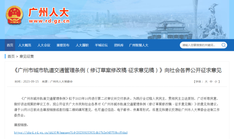 近日,广州市人大常委会在官网就