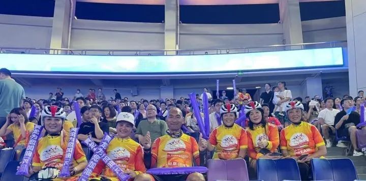 比赛现场,记者看到一群头戴骑行头盔、身穿骑行服的叔叔阿姨,在人群中格外显眼。原来,他们是广州梦骑行队,曾经经历过家门口广州亚运会的他们,为了助力杭州亚运会,一路从广州骑行,昨天刚到杭州。张姐告诉记者,“这次一共来了30多个人,杭州亚运会办得挺好的,跟我们那时候比,明显科技感增强了,一路上都看到很多科技元素。”
