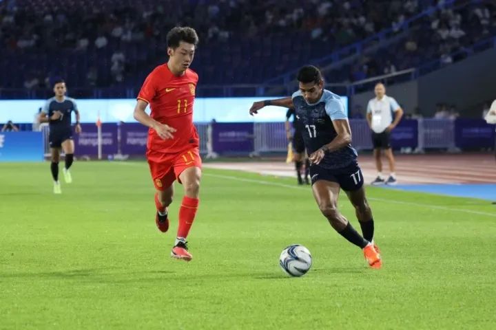 与此同时,中国男足亚运队出现在球场上,开始热身,大战一触即发。