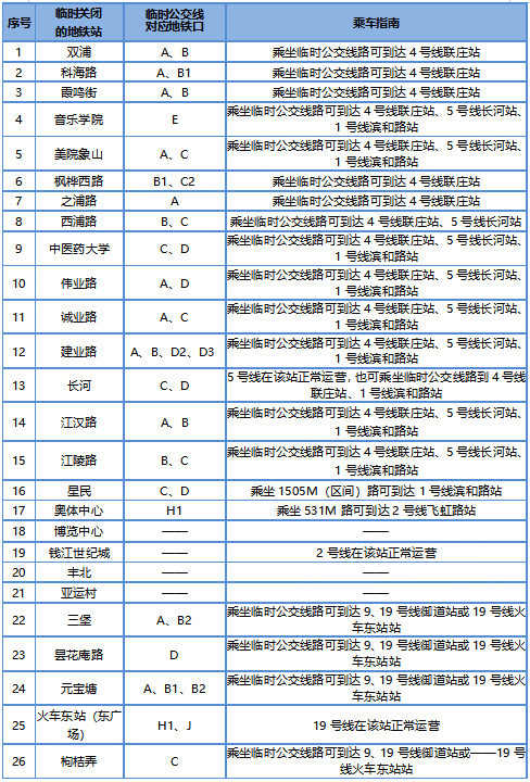 ▲1号线江陵路站、4号线中医药大学站、7号线奥体中心站、9号线三堡站暂停运营 ;