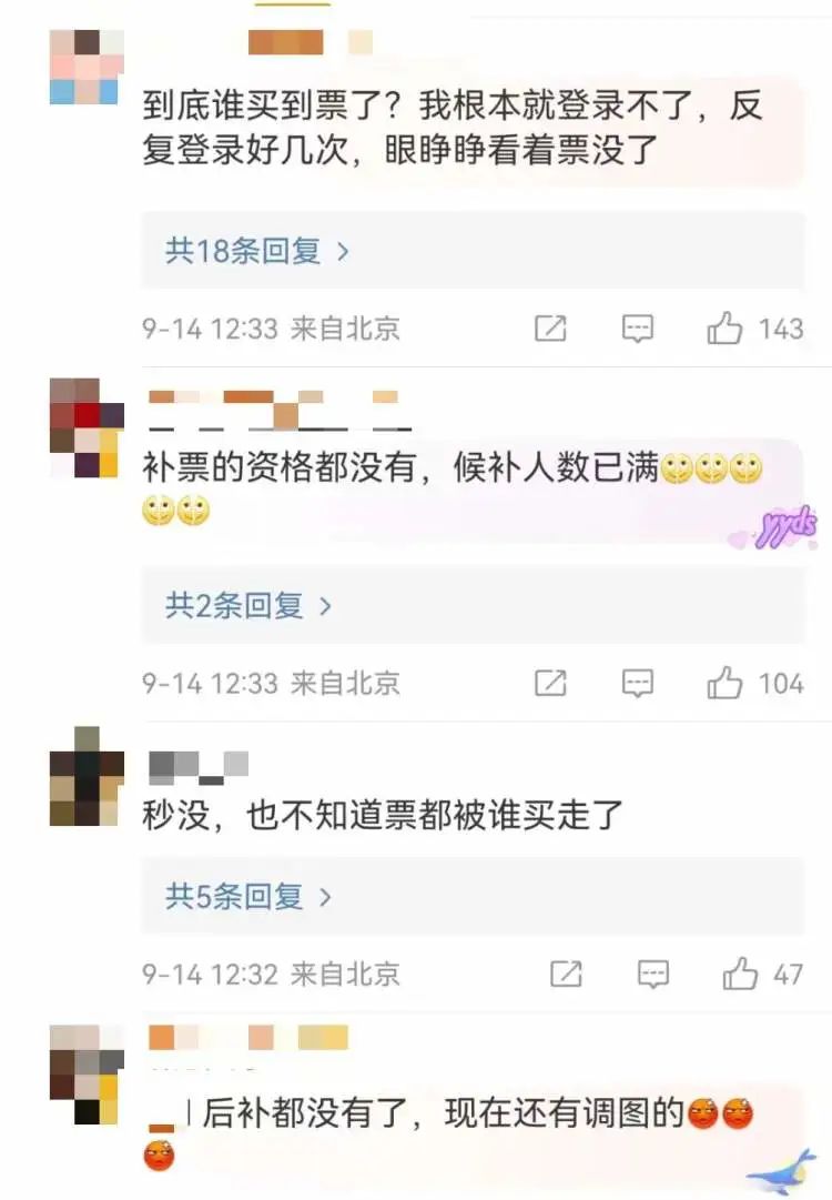 9月14日开售第一时间,车票秒光,连候补席位都已满