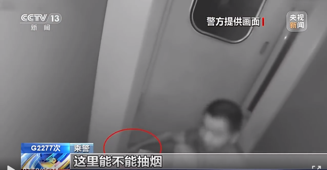在G2277次列车上,乘警在巡视车厢时发现,一男子竟然在2、3车厢连接处吸烟,乘警要求吸烟人立即掐灭香烟。原来,何某途中烟瘾发作,趁着车厢连接处无人想过一下烟瘾,所幸未造成烟雾报警和列车降速。