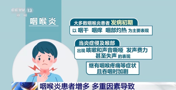 近日,随着气温下降,我国多地因咽喉炎就诊的人数有上升趋势,“嗓子疼”“一直咳嗽”等症状给患者带来了不少的困扰。那么,咽喉炎是什么原因引起的呢?