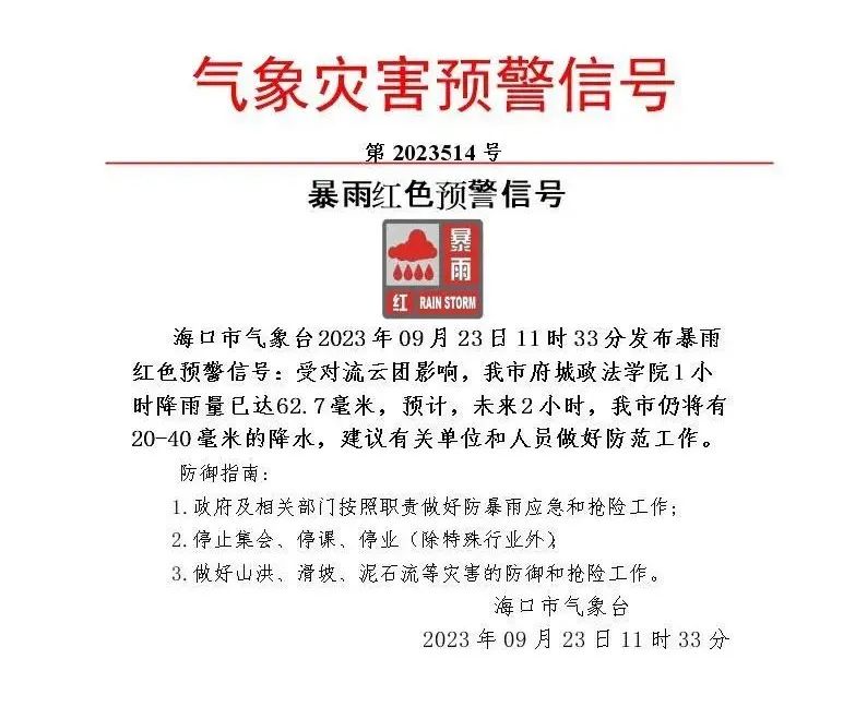 海口发 布暴雨红色预警