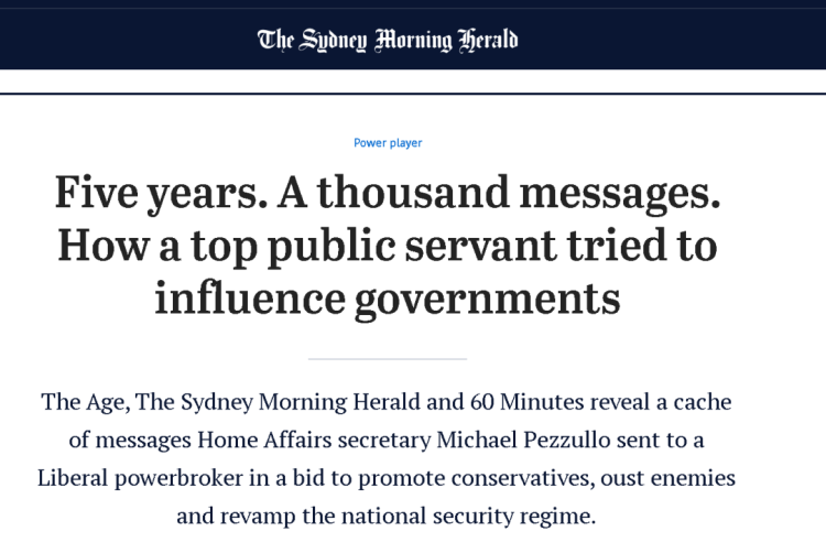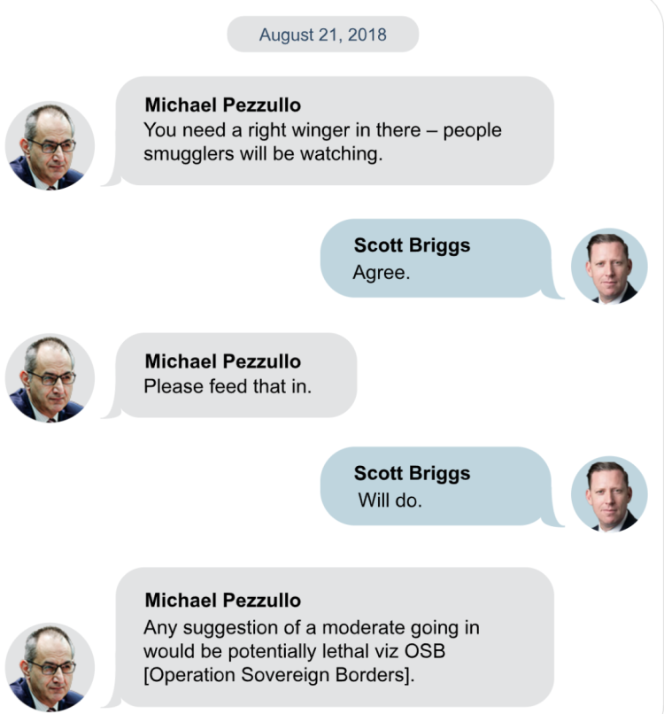 然而,这些媒体“通过第三方机构合法获得”的数百份佩祖罗在过去5年里发给他人的信息却显示,佩祖罗一直在与他所来自的澳大利亚自由党内一个很有影响力的政治说客有密切往来,而且在自由党联合执政澳大利亚期间,佩祖罗还时常希望此人能通过政治游说,把很符合自由党内保守派价值观与政策路线的人安排到他所在的内政部来——尽管佩祖罗本人在这些信息里宣称他这是“为了国家而不是党派”。