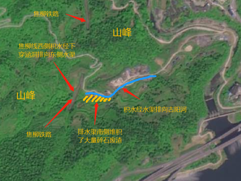 然而,就在前些年,湖南省湘西土家族苗族自治州古丈县水利局在组织兴修古阳河水库过程中,将弃渣弃土堆积在焦柳铁路下穿铁路路基排水涵洞导流渠南侧,随着雨水冲刷,弃渣弃土被逐年冲入导流渠并在涵洞堆积,排水涵洞截面的90%左右都被堵塞了,成为焦柳铁路运行的巨大安全隐患。