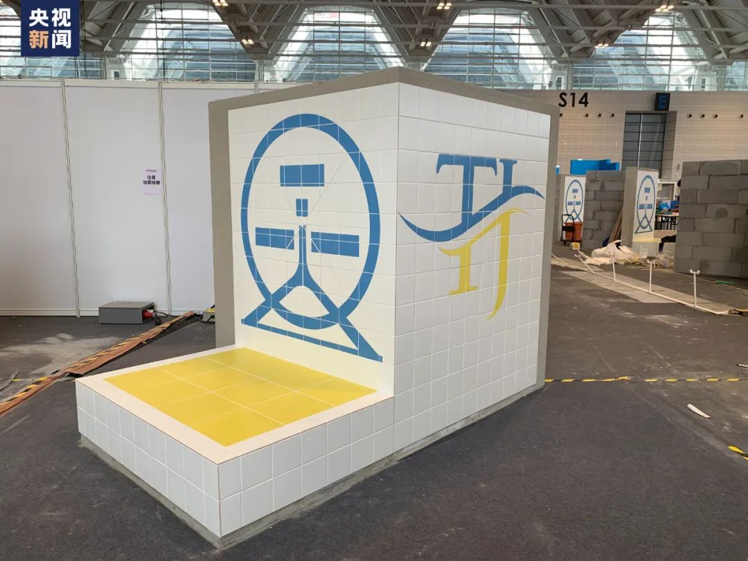 林宇翔介绍,第一天的A模块需要贴一个图形,名字为“天津之眼摩天轮”;第二天的B模块需要贴天津的首字母“TJ”;第三天,需要参赛选手在台阶上将瓷砖整齐贴上。
