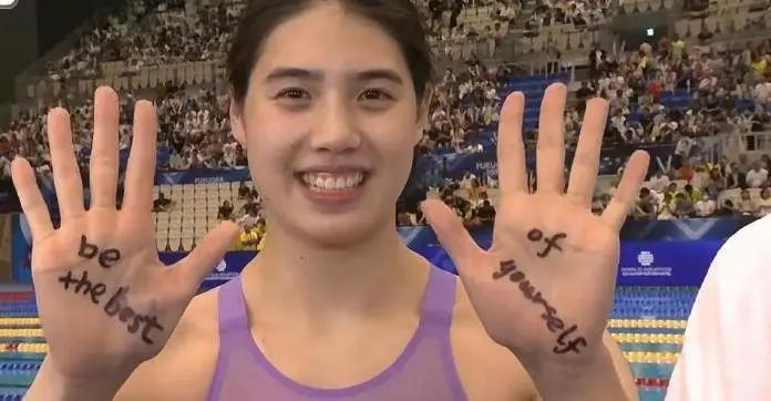 在今年福冈游泳世锦赛上,张雨霏和池江的故事再次续写。赛后,张雨霏特地等在一旁,在手心写下“be the best of yourself”,并向池江展示,两人再次相约杭州。