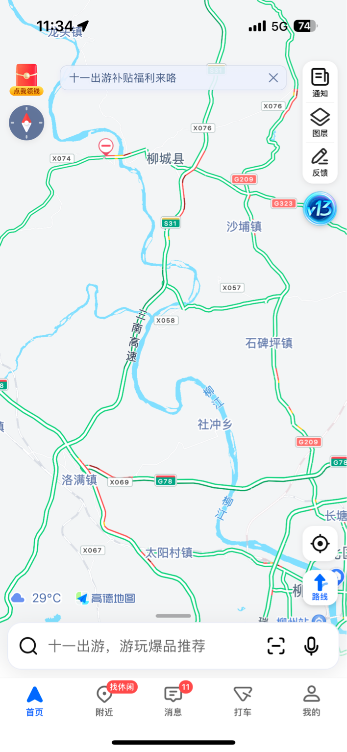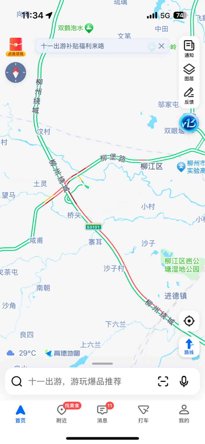 高速收费站 方面,柳州东收费站、柳江收费站出城方向沿线车多缓行。