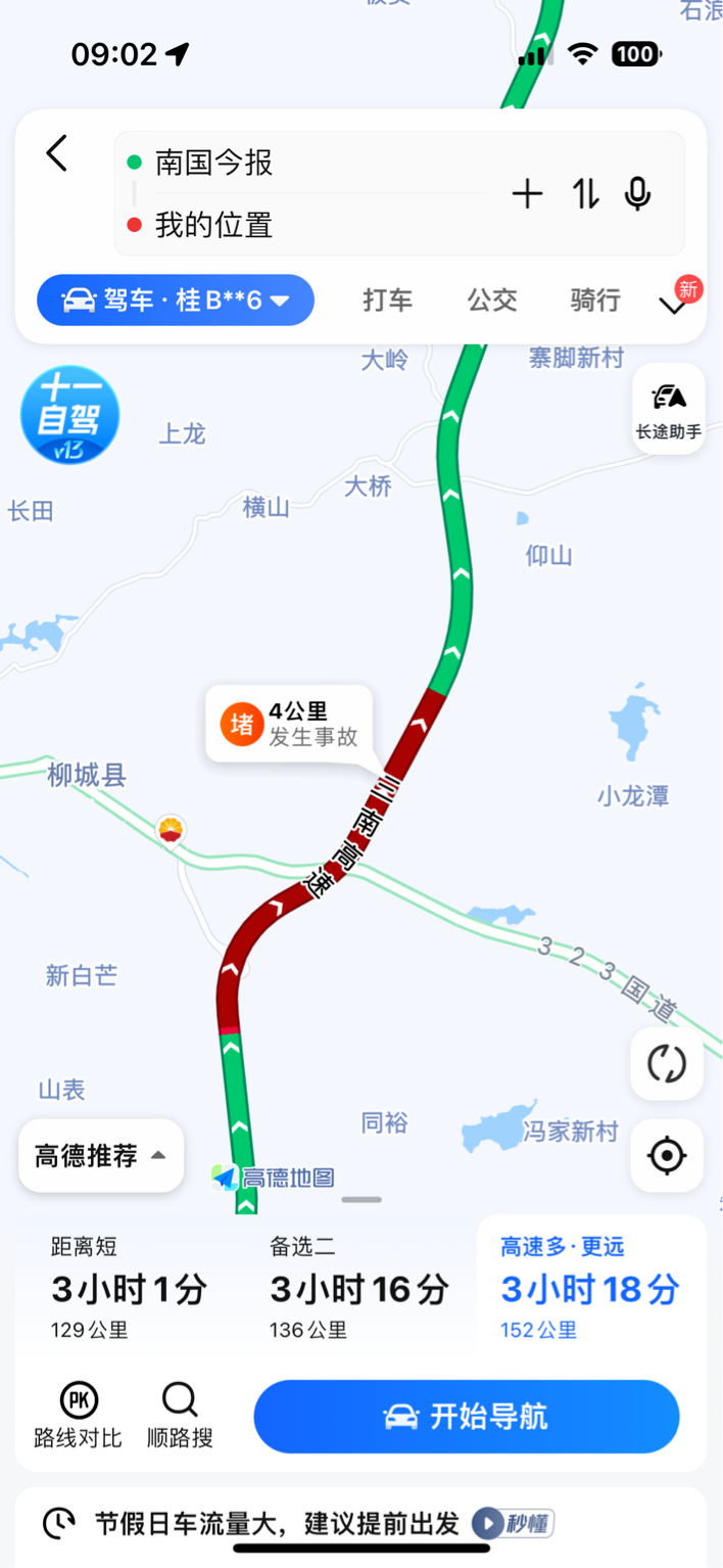 柳州交警发布的实时路况显示: