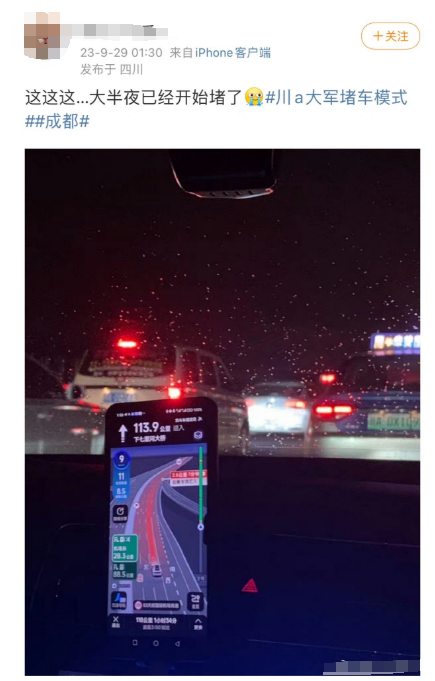 网友29日凌晨1时30分称,大半夜已经开始堵了。