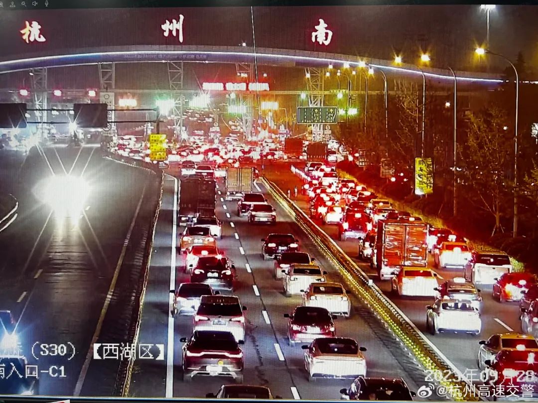 杭州高速交警预判,“双节”出城高峰出现在9月28日12时至9月30日24时(其中17时-24时缓行程度最高)。