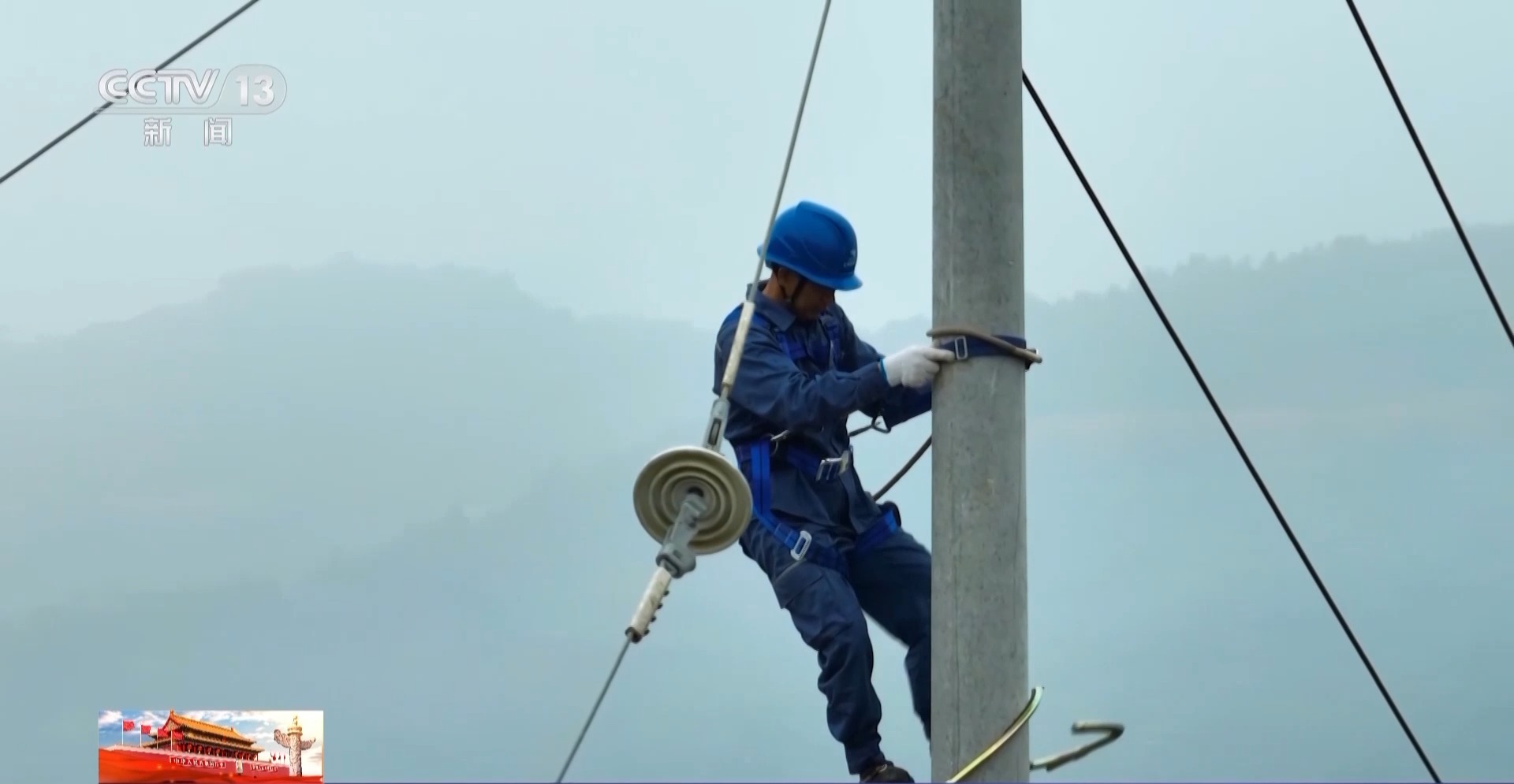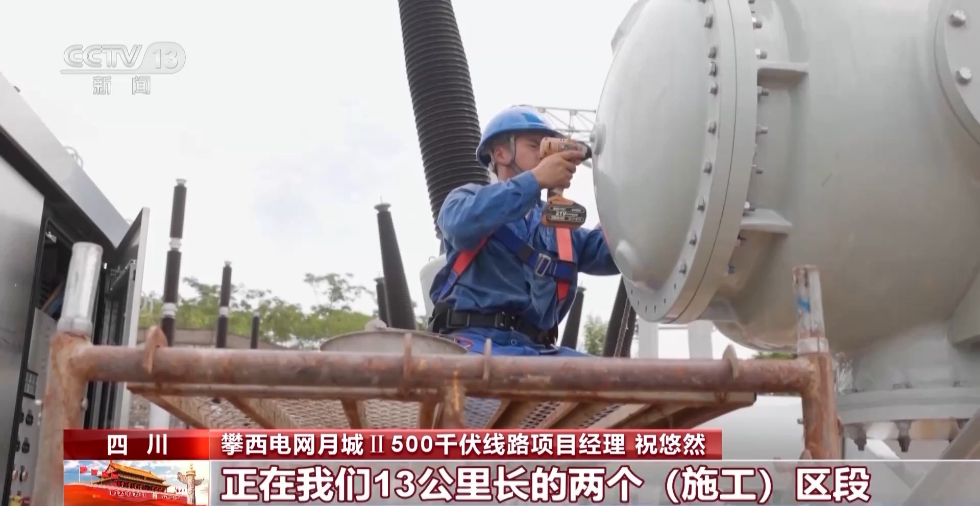 攀西电网月城Ⅱ500千伏线路项目经理祝悠然:这个工程,工期紧、任务也重,这个国庆期间,我们大家都没有休息,有200多名电力工人正在我们13公里长的两个施工区段进行有序的工程建设。