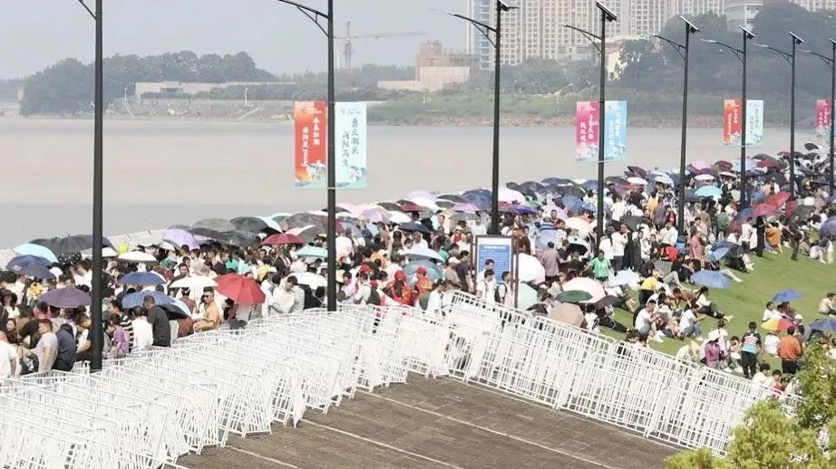 由于各地市民游客前往观潮