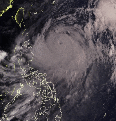3日08时,“小犬”中心位于广州市东偏南方向约1200公里的菲律宾以东洋面上,较2日08时向西北方向移动了约280公里,中心附近最大风力16级(52米/秒),中心最低气压935百帕。