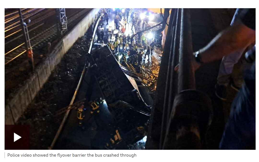 报道称,直至周二深夜,救援人员仍在努力清除巴士残骸,以确保没有更多乘客被困车内。