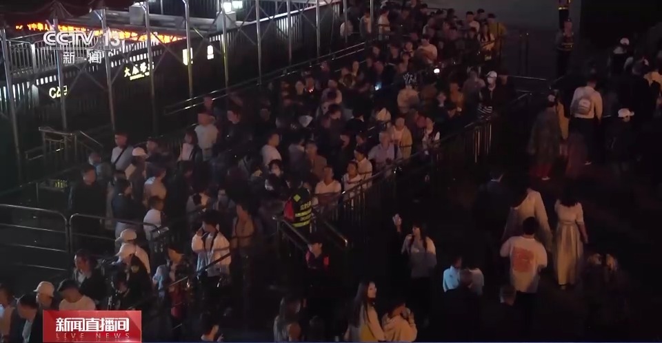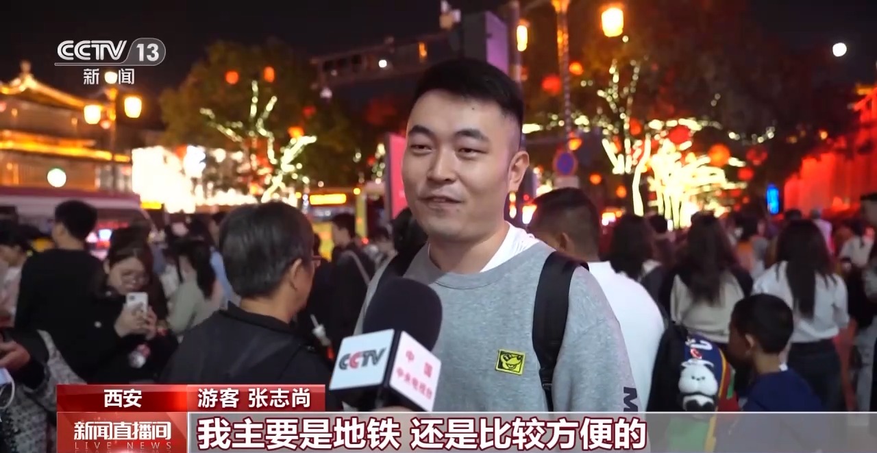 曲江新区城管局工作人员 张沛:(早上)8时30分到晚上的12时是我们的执勤时间。我们及时和安保指挥部对接,遇到大客流时候,配合公安、交警,进行疏导游客。