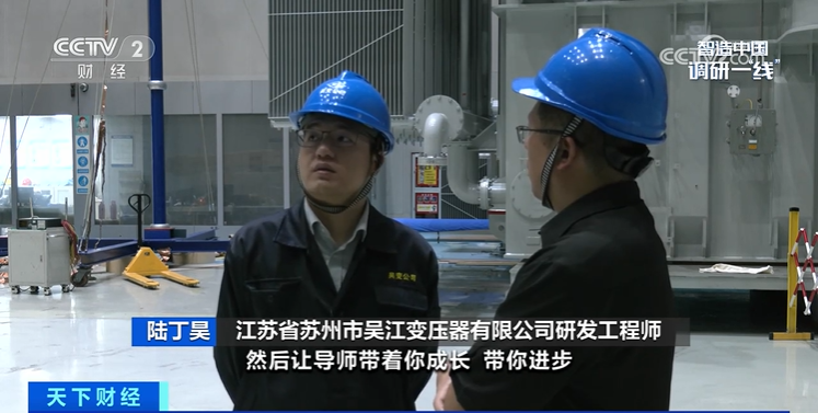 江苏省苏州市吴江变压器有限公司研发工程师 陆丁昊: 从入职开始,公司会给你指定一个导师,让导师带你成长进步。我现在基本上跟着禹总开展科研相关工作。