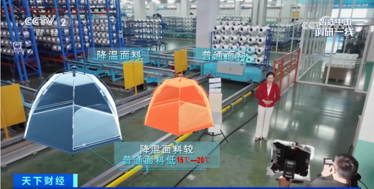 还有能降温的面料,在室外同样高温环境下,用它做成的帐篷,比普通帐篷温度低15℃-20℃。有了它,夏天炎热也不用愁了。