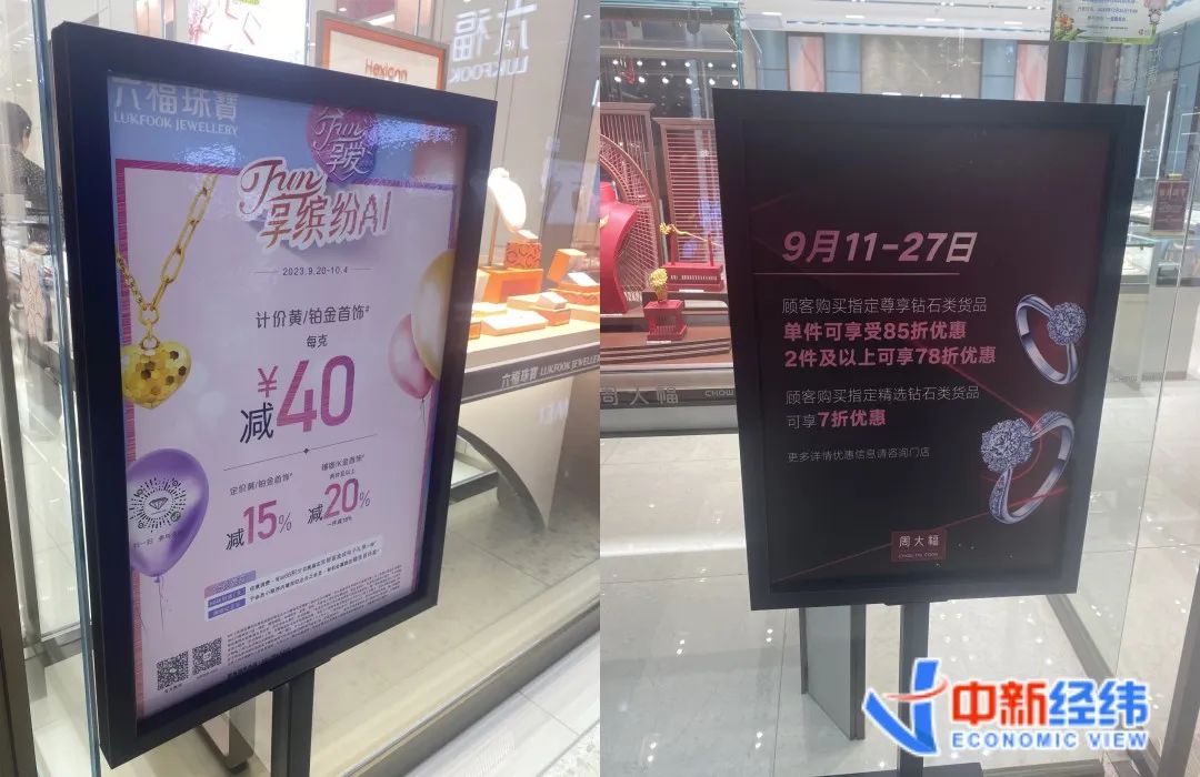 9月22日,中新经纬走访多家北京商场时发现,近期部分珠宝品牌的钻石饰品纷纷推出促销活动。比如周大福部分钻石饰品打7折;周大生钻石饰品打7.9折,部分款式降价幅度超千元;瑞恩钻石则推出返现金活动,满一万元,分三年返现金。顾客购买满一万元以上的钻石饰品,每月返277元。如果不选返现,可以参加7折优惠活动。